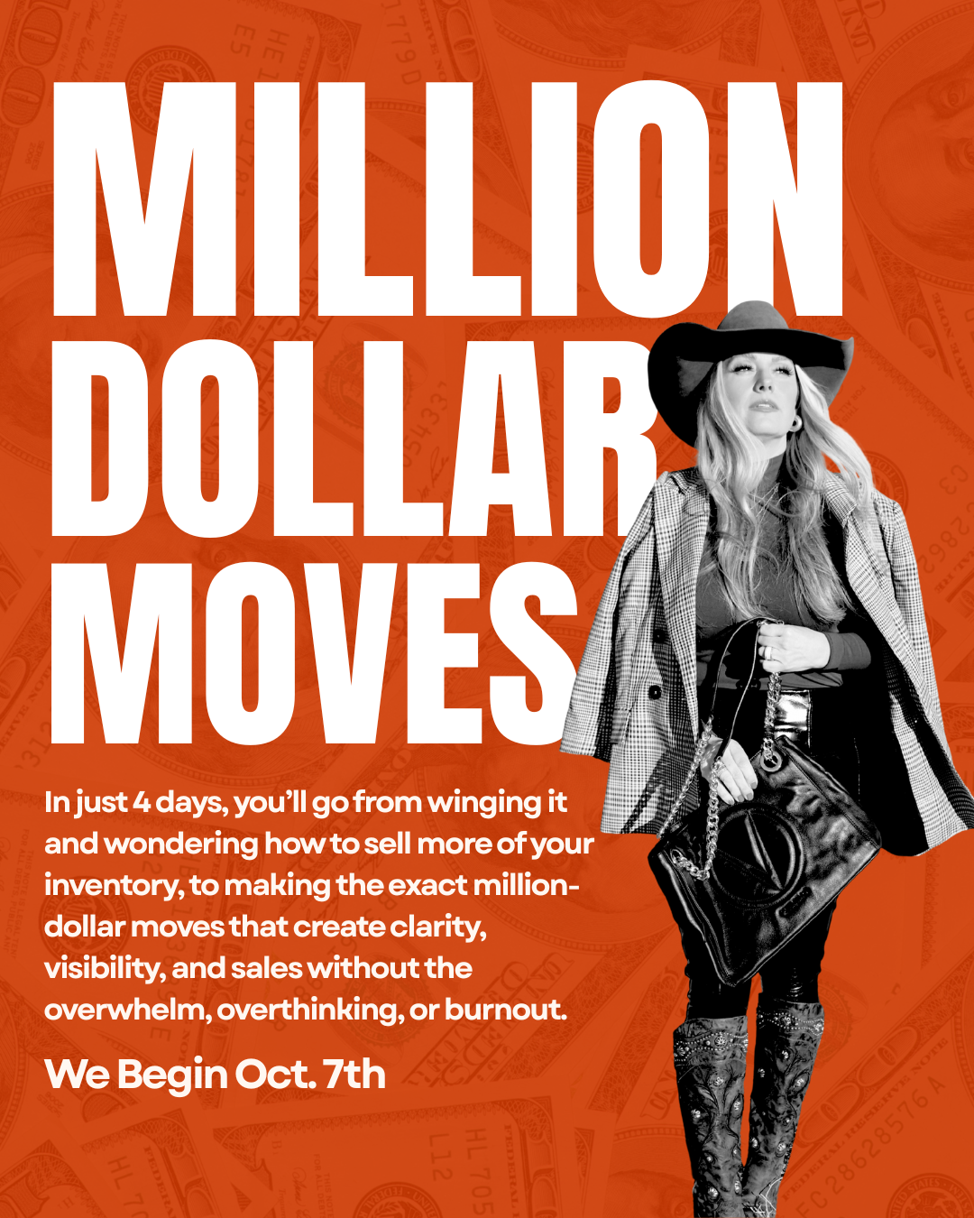 In just 4 days, you’ll go from winging it and wondering how to sell more of your inventory, to making the exact million-dollar moves that create clarity, visibility, and sales without the overwhelm, overthinking, or burnout.